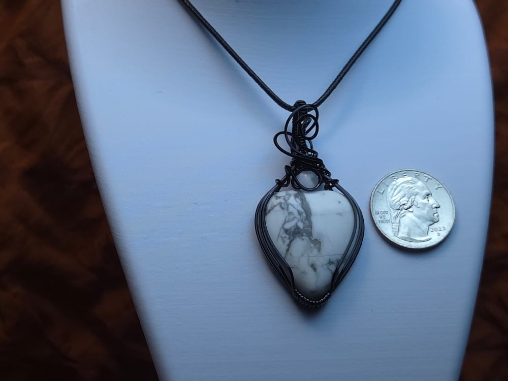 Black wire wrapped Howlite heart